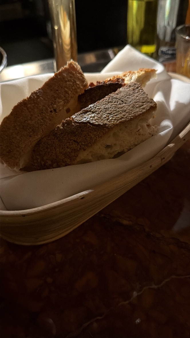 The interior is notably dark, utilizing shadows and warm, low-level lighting to create intimacy. Despite the lack of brightness, the space absorbs noise well, making conversation feasible even when the room is full. During this visit, dining took place at the bar. The service, provided by a bartender named Benny, was attentive but not intrusive. Staff demonstrated strong menu knowledge and managed pacing deliberately, ensuring courses arrived with appropriate intervals. The interaction was casual but maintained professional standards suitable for the venue’s pricing.