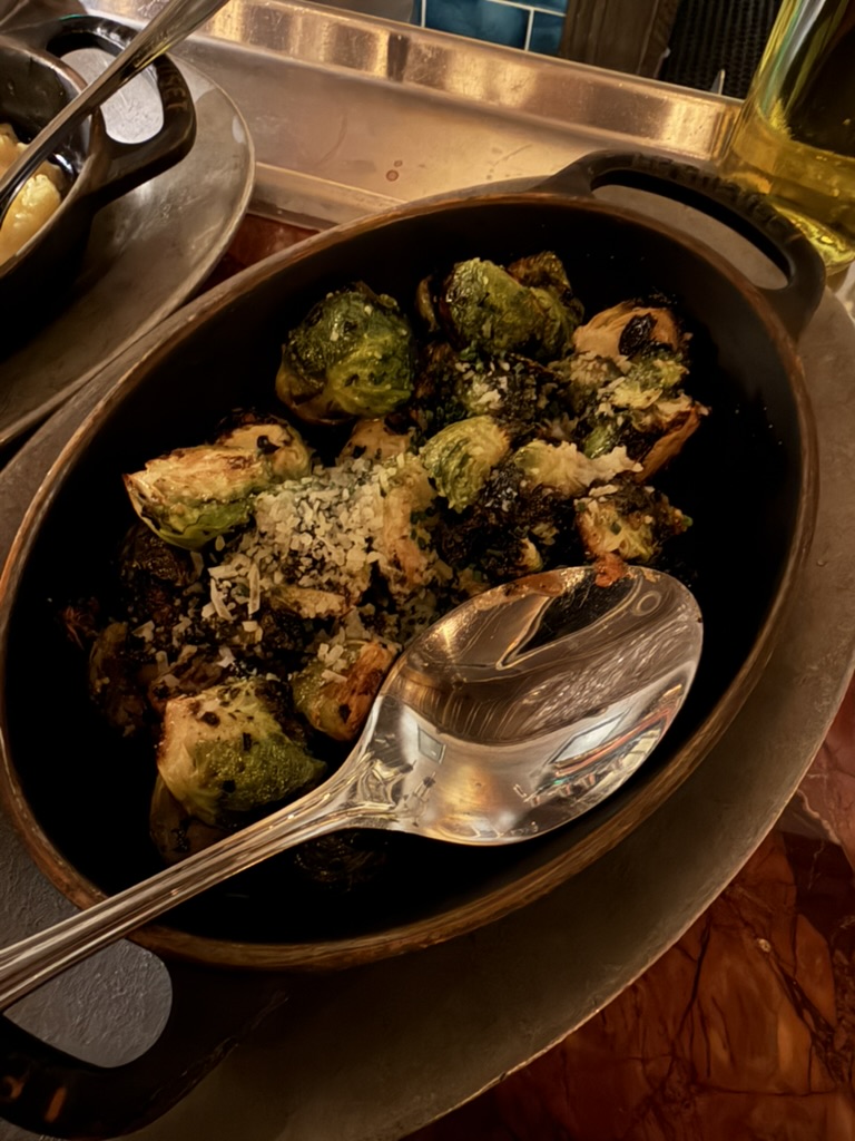 The sprouts are charred to bring out a slight bitterness that cuts through the fat of the main courses. They are roasted until crisp on the exterior while remaining tender inside. The seasoning leans toward the savory spectrum, utilizing elements like cured pork or aged cheese to add complexity.