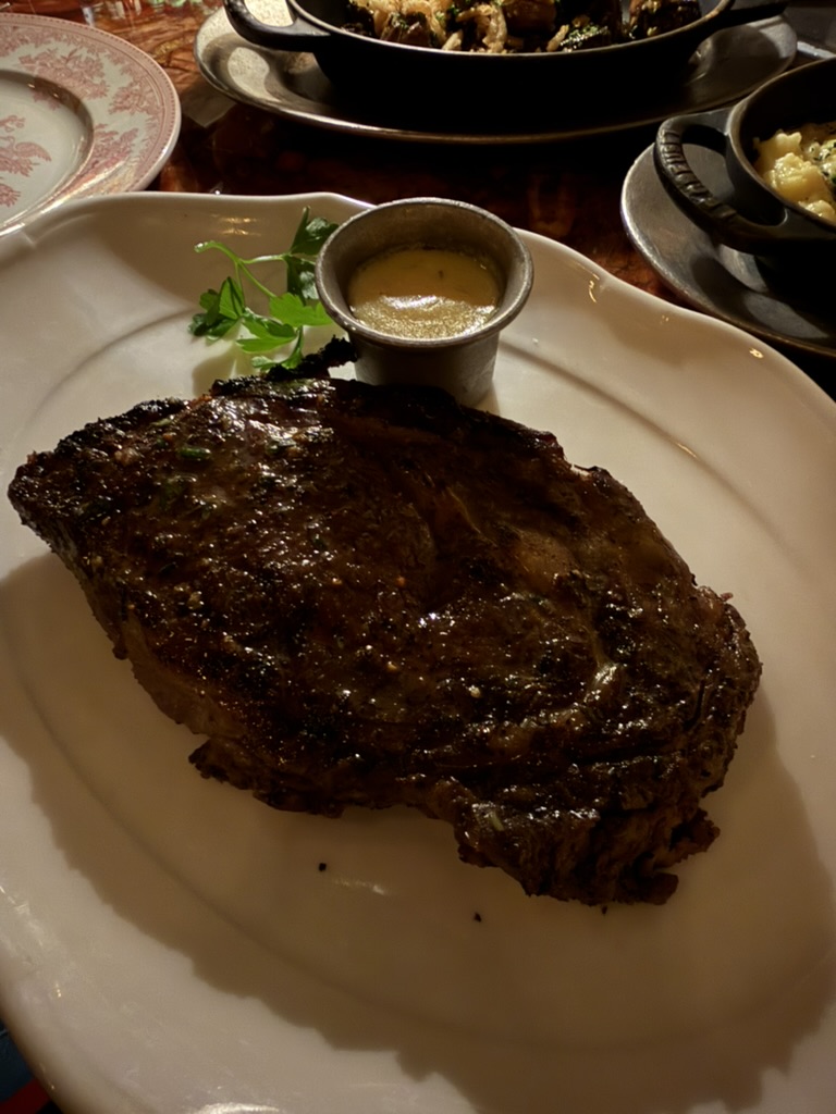 This 16-ounce bone-in cut arrives with a significant char that provides a textural contrast to the interior. The marbling is rendered effectively, contributing to a savory, umami-rich profile. Seasoning is well-calibrated, using salt and pepper to amplify the beef’s natural flavor rather than mask it. The steak is rested properly before service, ensuring juices are retained.