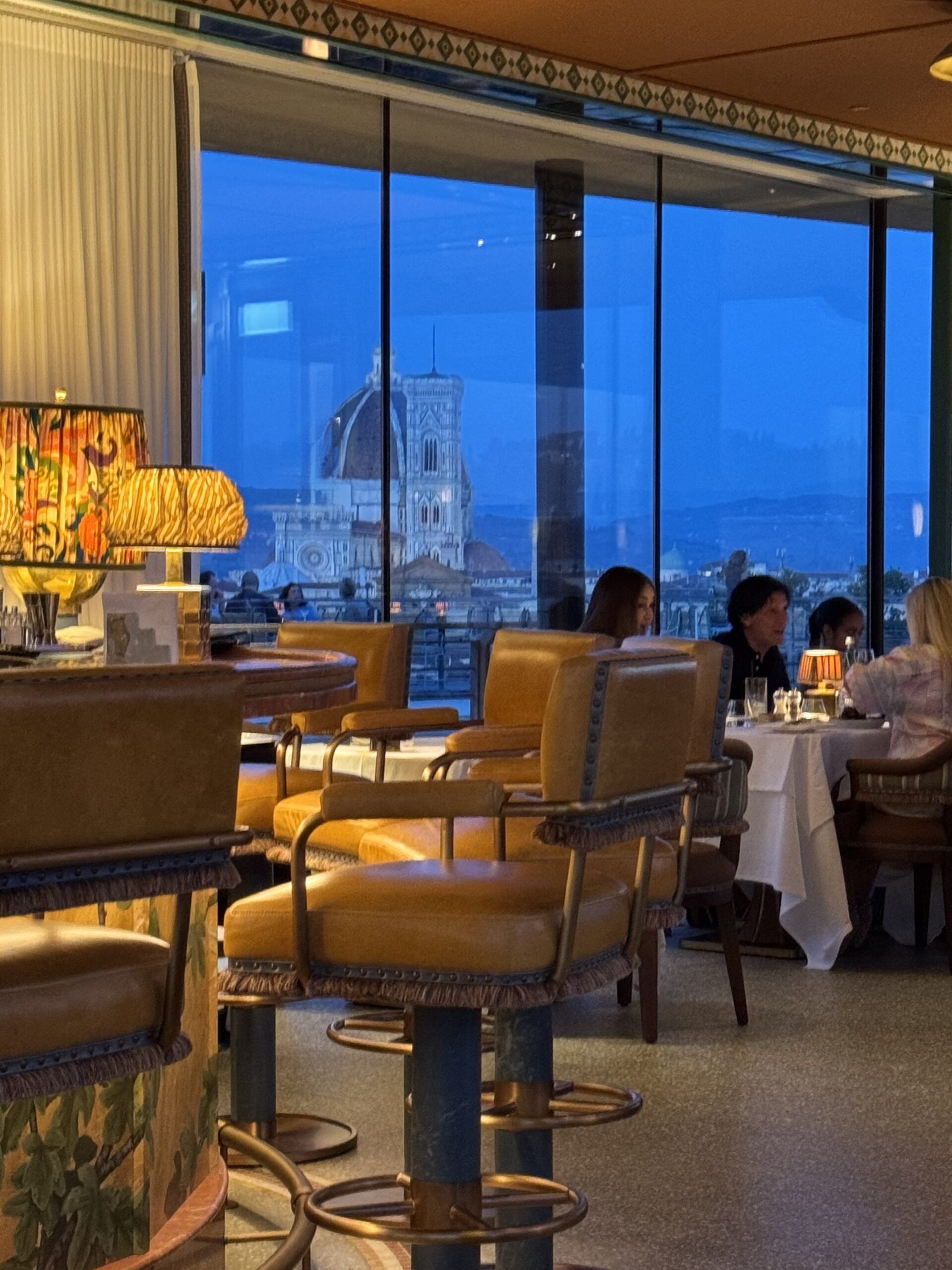 The interiors, crafted by designer Martin Brudnizki, blend luxe materials with Florentine craftsmanship. The mood balances warmth and sophistication—perfectly complementing the expansive outdoor terrace and panoramic skyline.(Firenze Made in Tuscany)