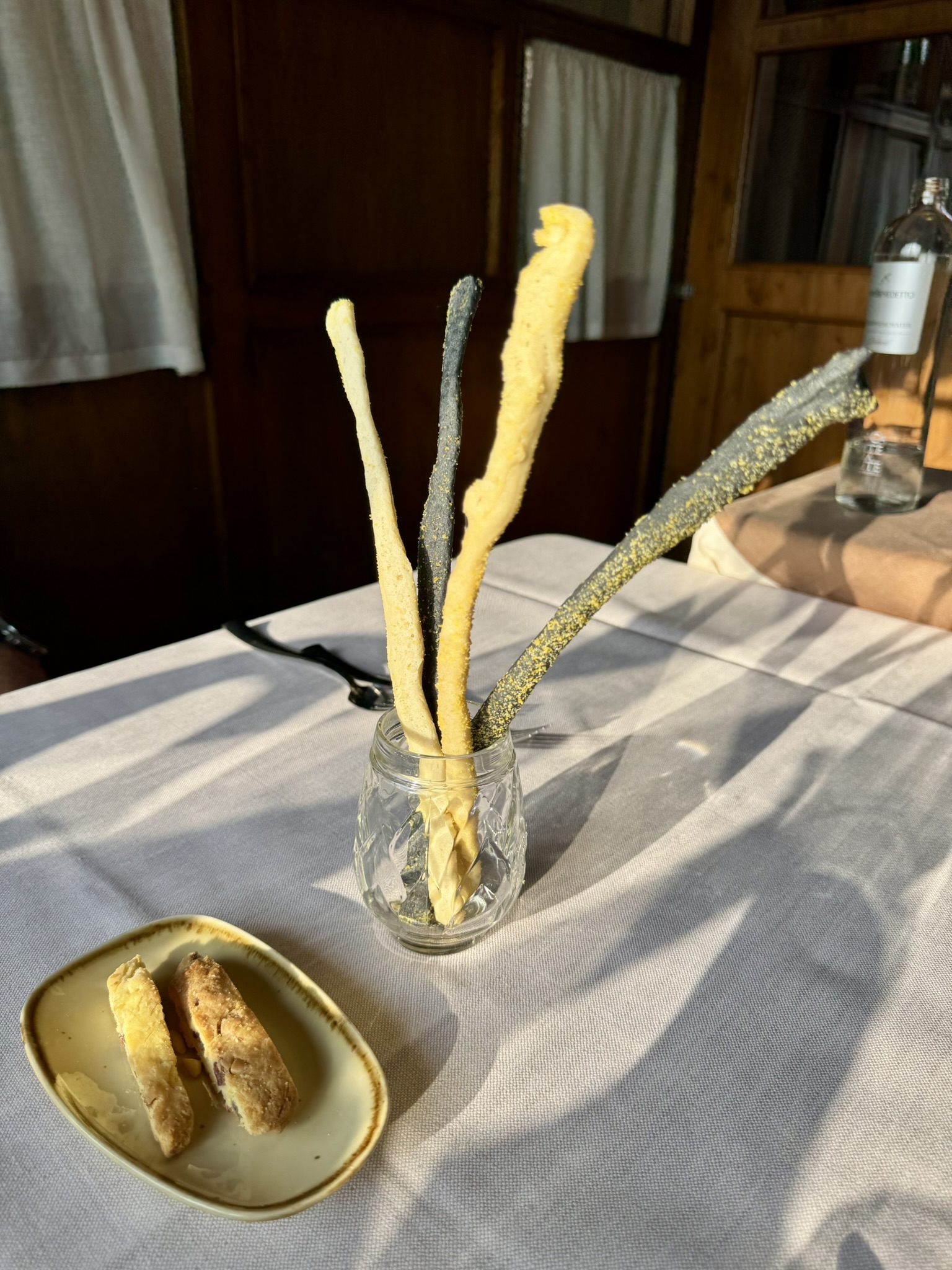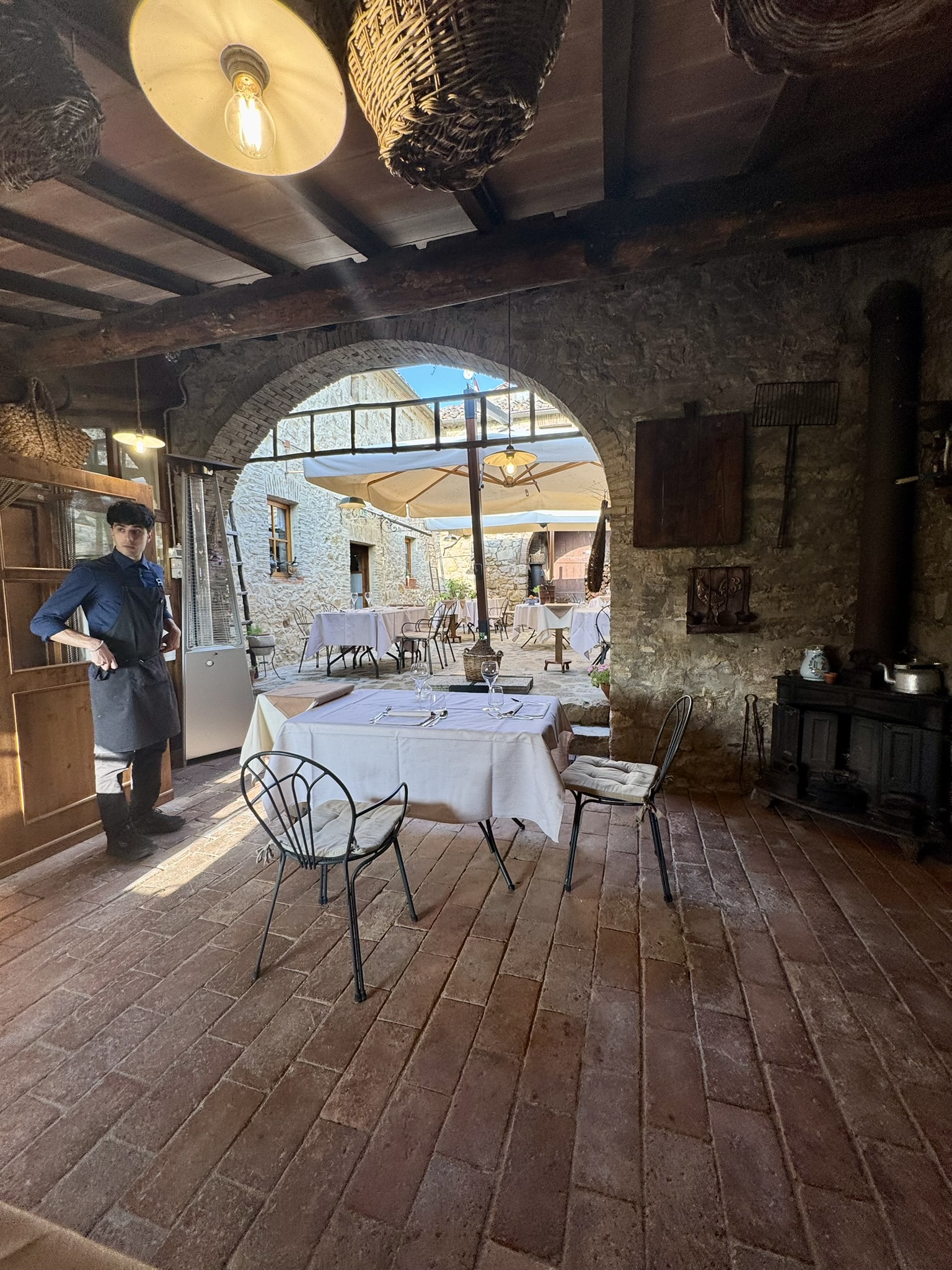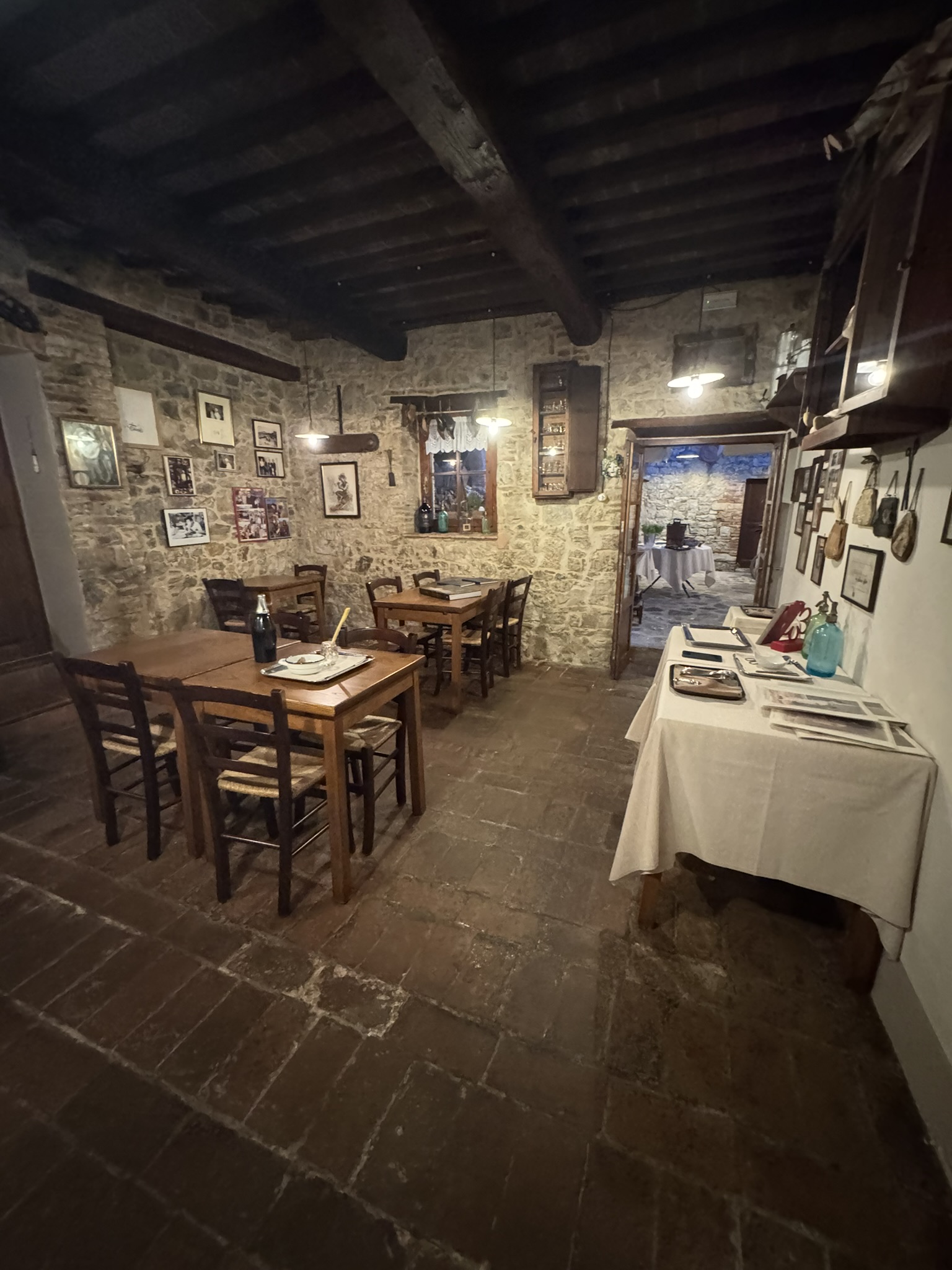 The dining room is small and intimate, with stone walls and modest lighting that keeps the focus on the table. Alessandra and Daniele handled service during our visit, showing strong familiarity with both dishes and wines. Service was attentive without being intrusive, and pacing across five courses was deliberate and well-timed. Conversation was comfortable, as the space absorbed noise efficiently.