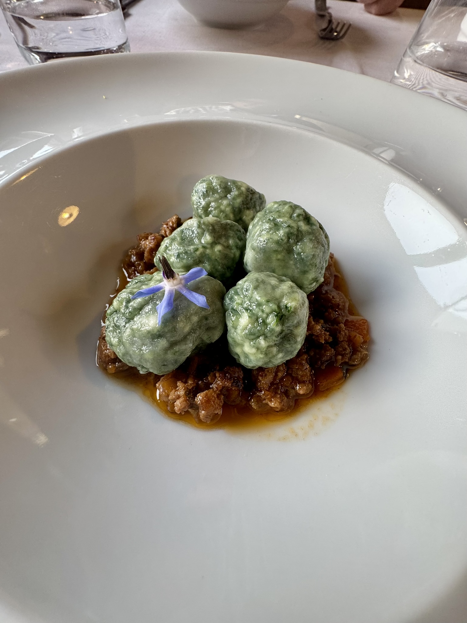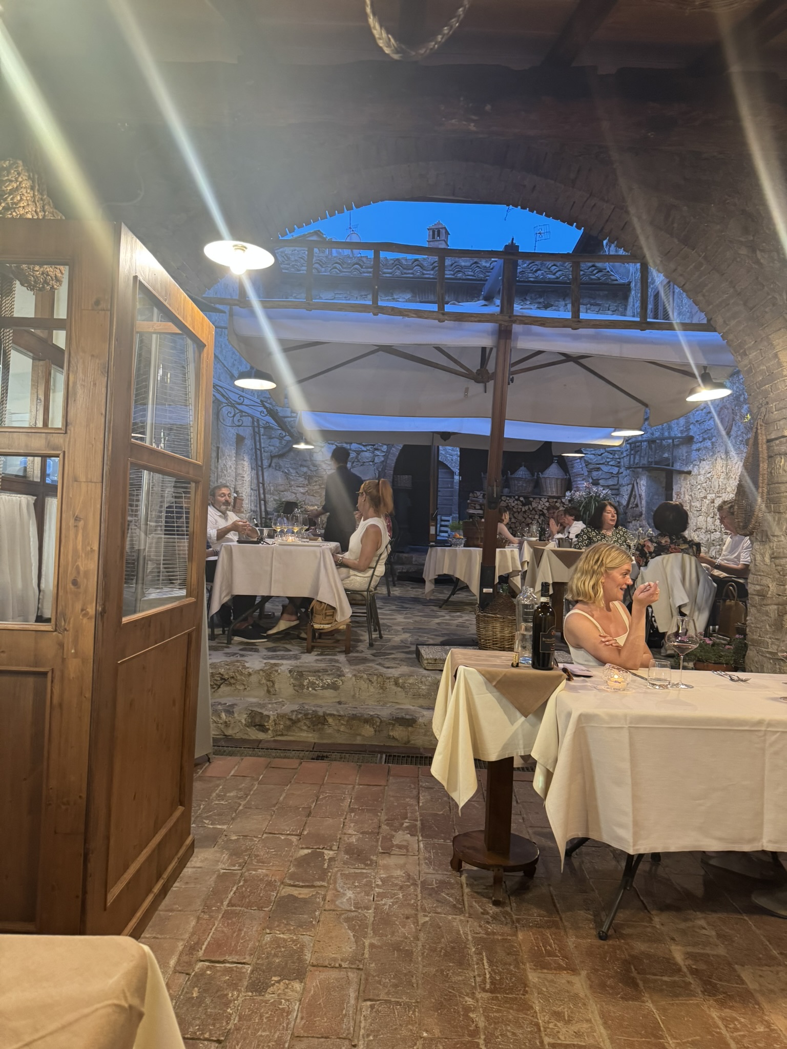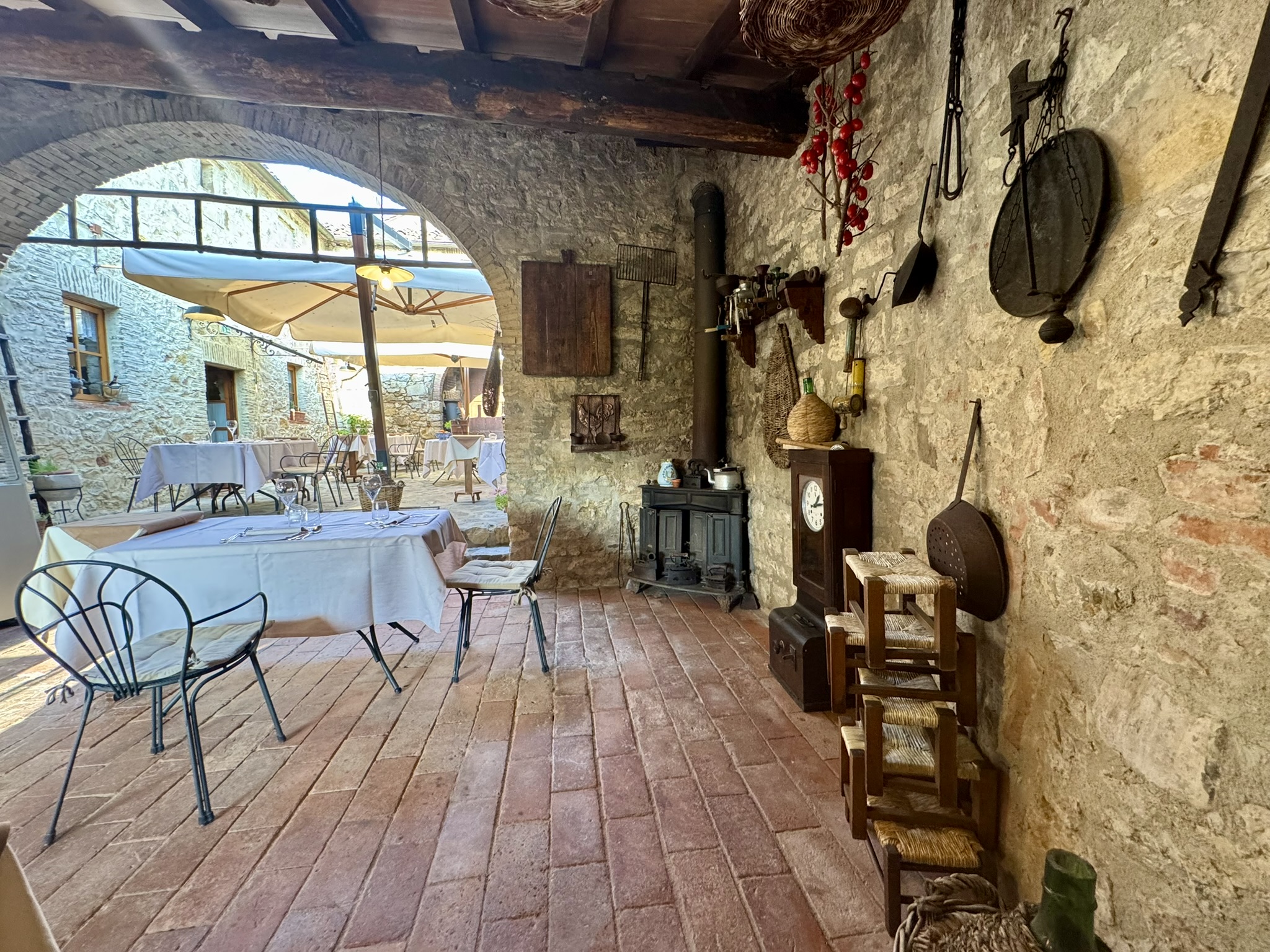 The dining room is small and intimate, with stone walls and modest lighting that keeps the focus on the table. Alessandra and Daniele handled service during our visit, showing strong familiarity with both dishes and wines. Service was attentive without being intrusive, and pacing across five courses was deliberate and well-timed. Conversation was comfortable, as the space absorbed noise efficiently.