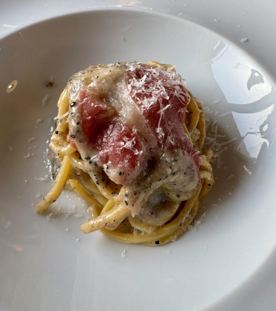 • Spaghetti with Black Truffle and Smoked Goose Breast presented umami depth balanced by the goose’s smoky edge.