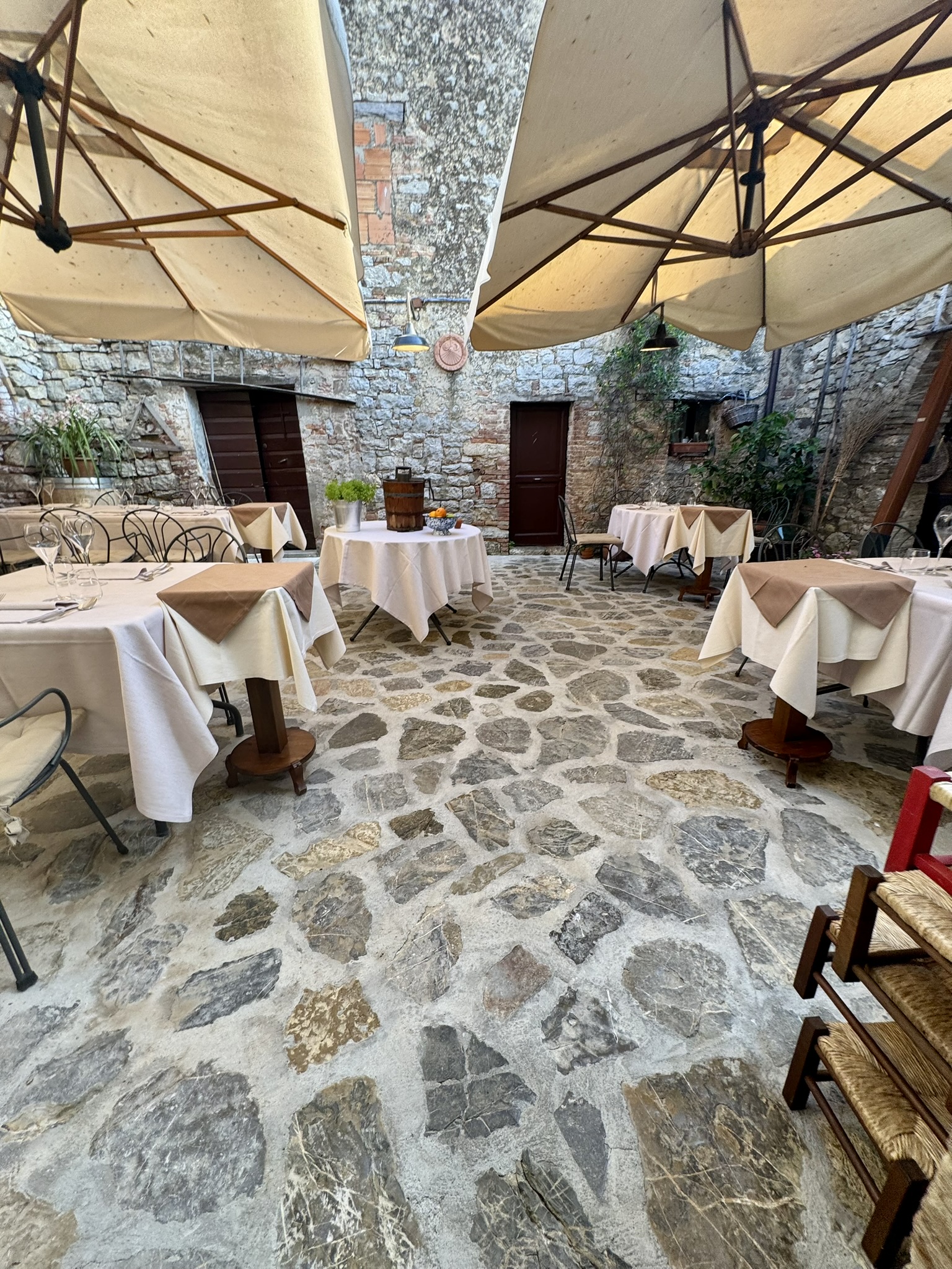 Founded in a restored country house, the restaurant has earned recognition in both Italian and international dining circles, including Michelin Guide listings. The dining room presents a style best described as Chianti chic, where rustic stonework meets understated elegance. With a corkage fee of 10 euros, guests can bring wines to complement the kitchen’s focused tasting format. Current menus and hours are listed on the official site: labottegadel30.com.
