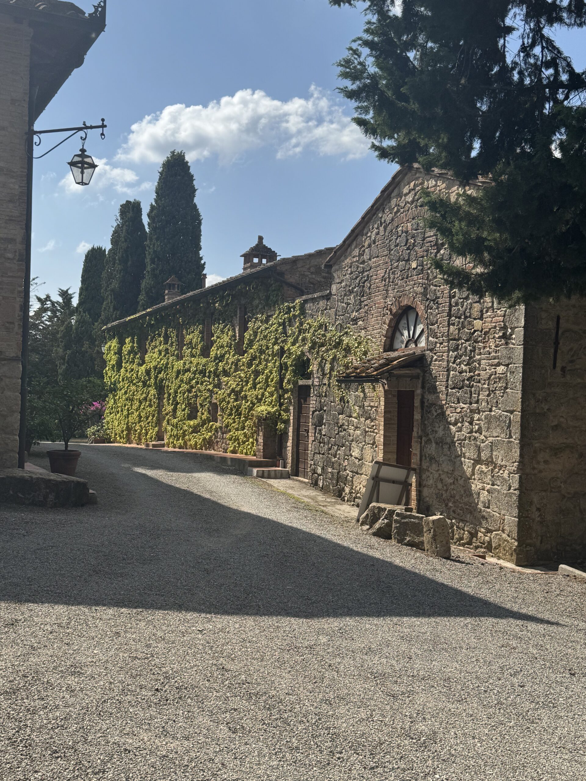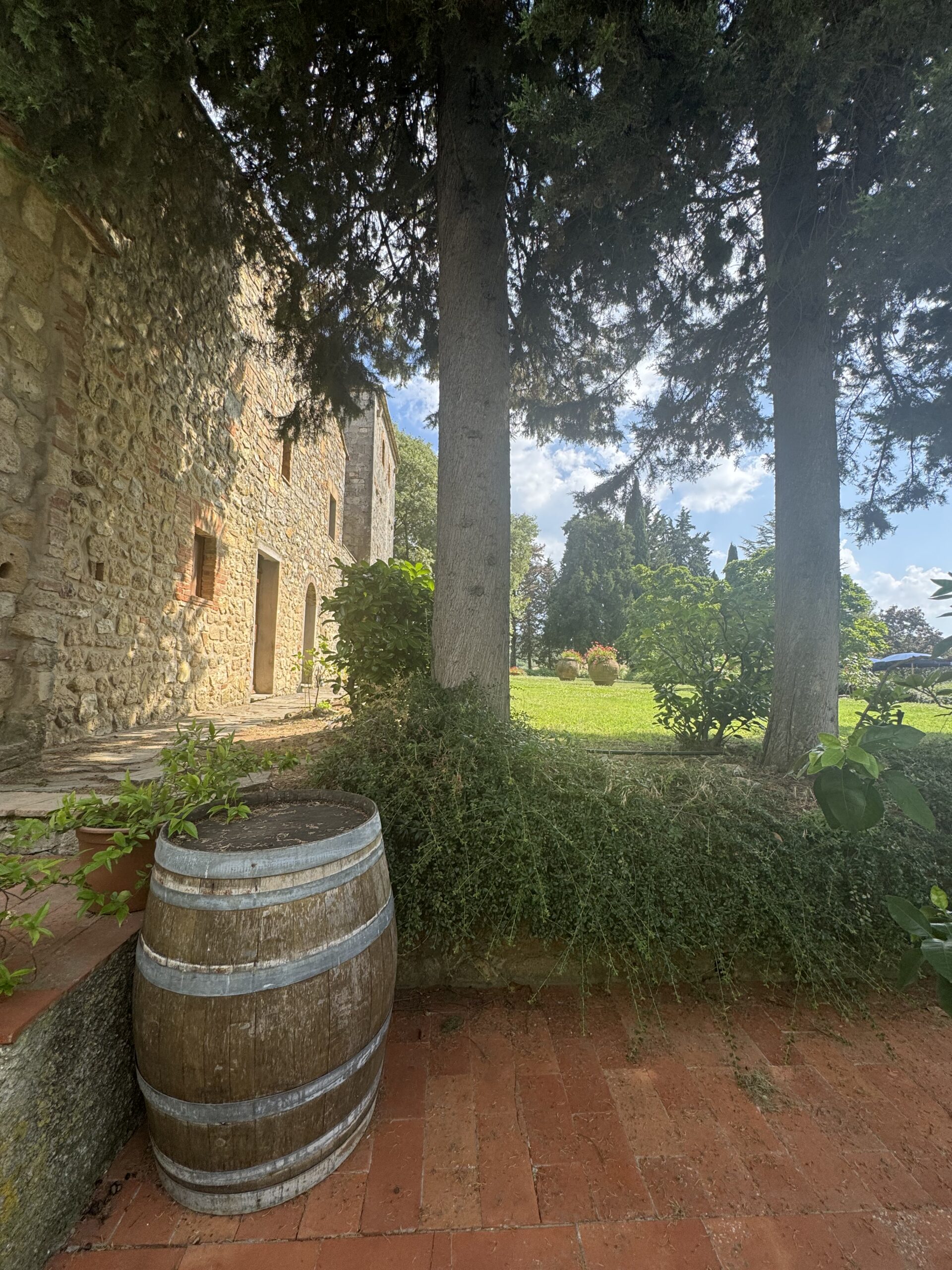 The estate spans over 60 hectares across several sites around San Gimignano, with notable parcels in Santa Margherita and Larniano. The terrain varies from compact clay to limestone-rich soils, offering a range of microclimates. Elevations between 300 and 400 meters allow for significant diurnal shifts, preserving acidity and aromatic clarity in the wines. The winery itself sits in a restored farmhouse surrounded by olive groves and vineyards, with tasting areas both indoors and on a panoramic terrace overlooking the towers of San Gimignano.