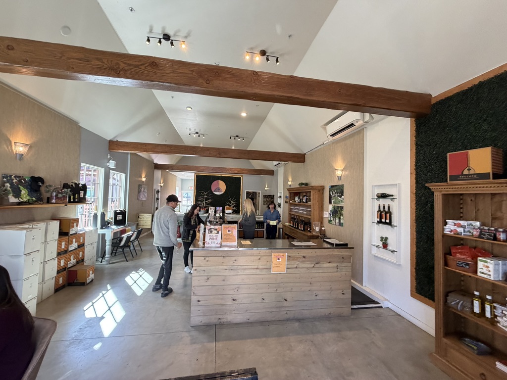 For those seeking a more focused experience, the staff provides factual information regarding the vineyard origins—primarily the Los Alamos and Valley View vineyards—and the specific characteristics of the Italian clones used. Tastings often conclude with a fortified wine or port-style selection to demonstrate the range of the portfolio.