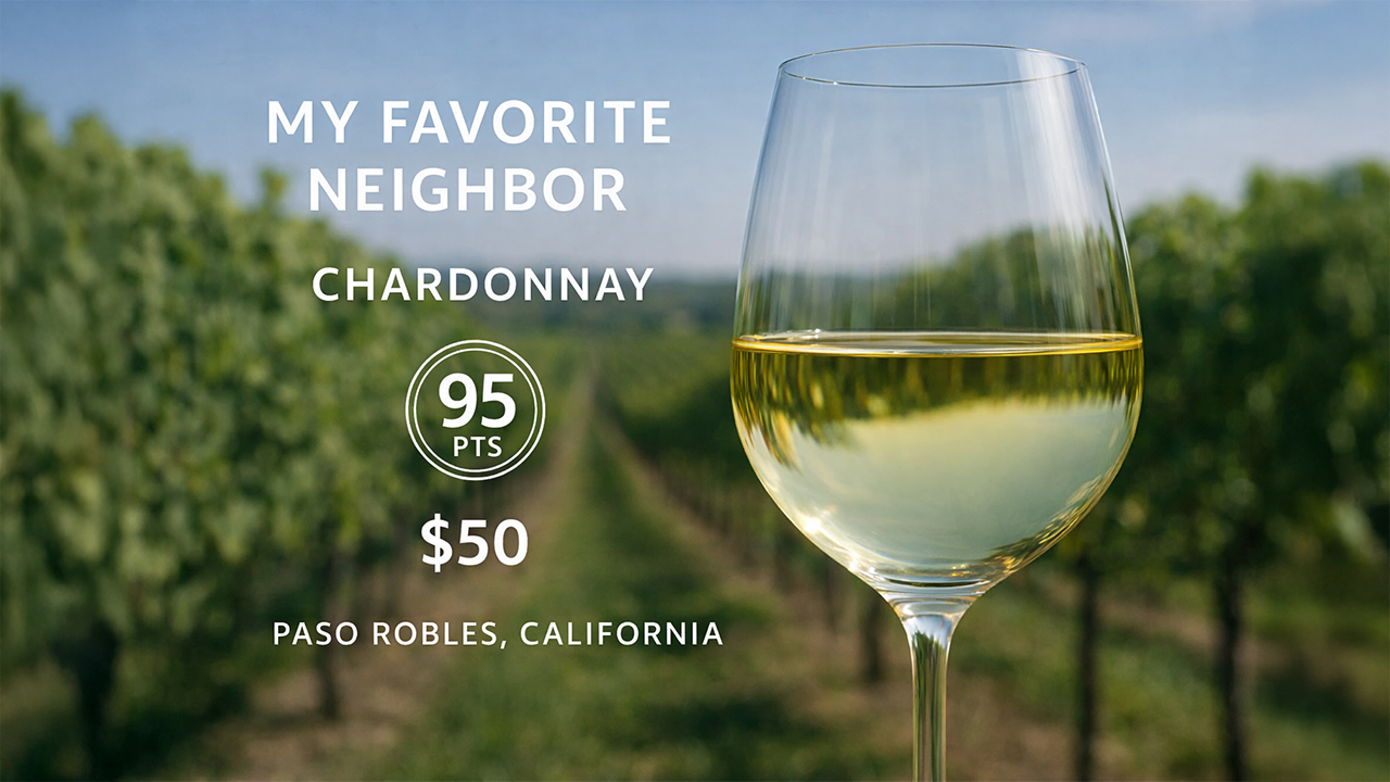 Paso Robles is primarily celebrated for its robust red wines, but the 2021 My Favorite Neighbor Chardonnay demonstrates that this dynamic region can produce exceptional whites as well. Crafted by winemaker Eric Jensen, this Chardonnay combines the lush qualities of California fruit with the finesse of Burgundian technique, resulting in a wine that’s elegant, expressive, and highly rated.